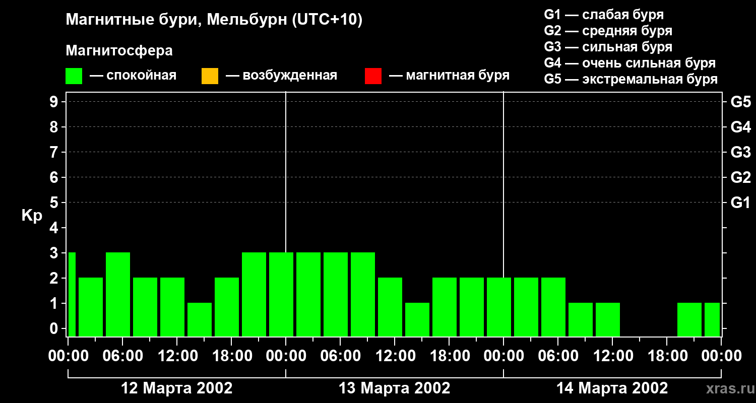 Магнитные бури в Мельбурне 14 марта 2002 года