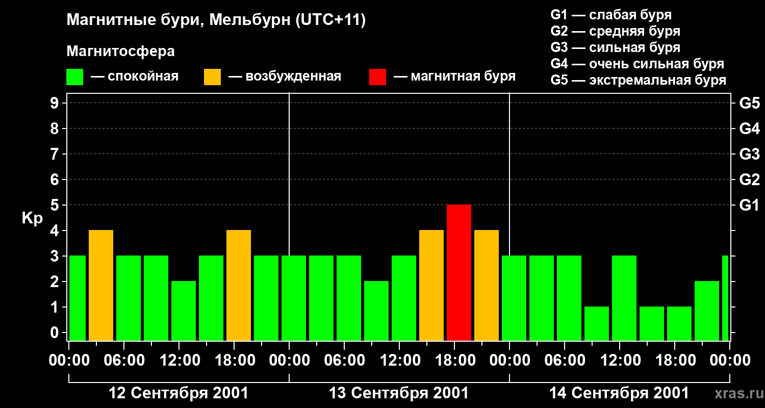 Магнитные бури в Мельбурне 14 сентября 2001 года