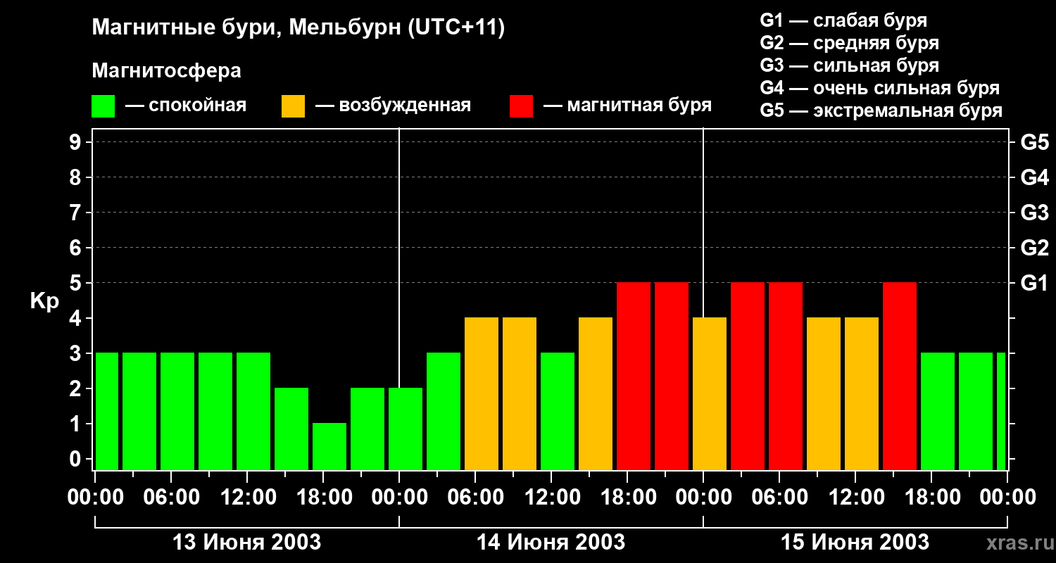 Магнитные бури в Мельбурне — 15 июня 2003 года