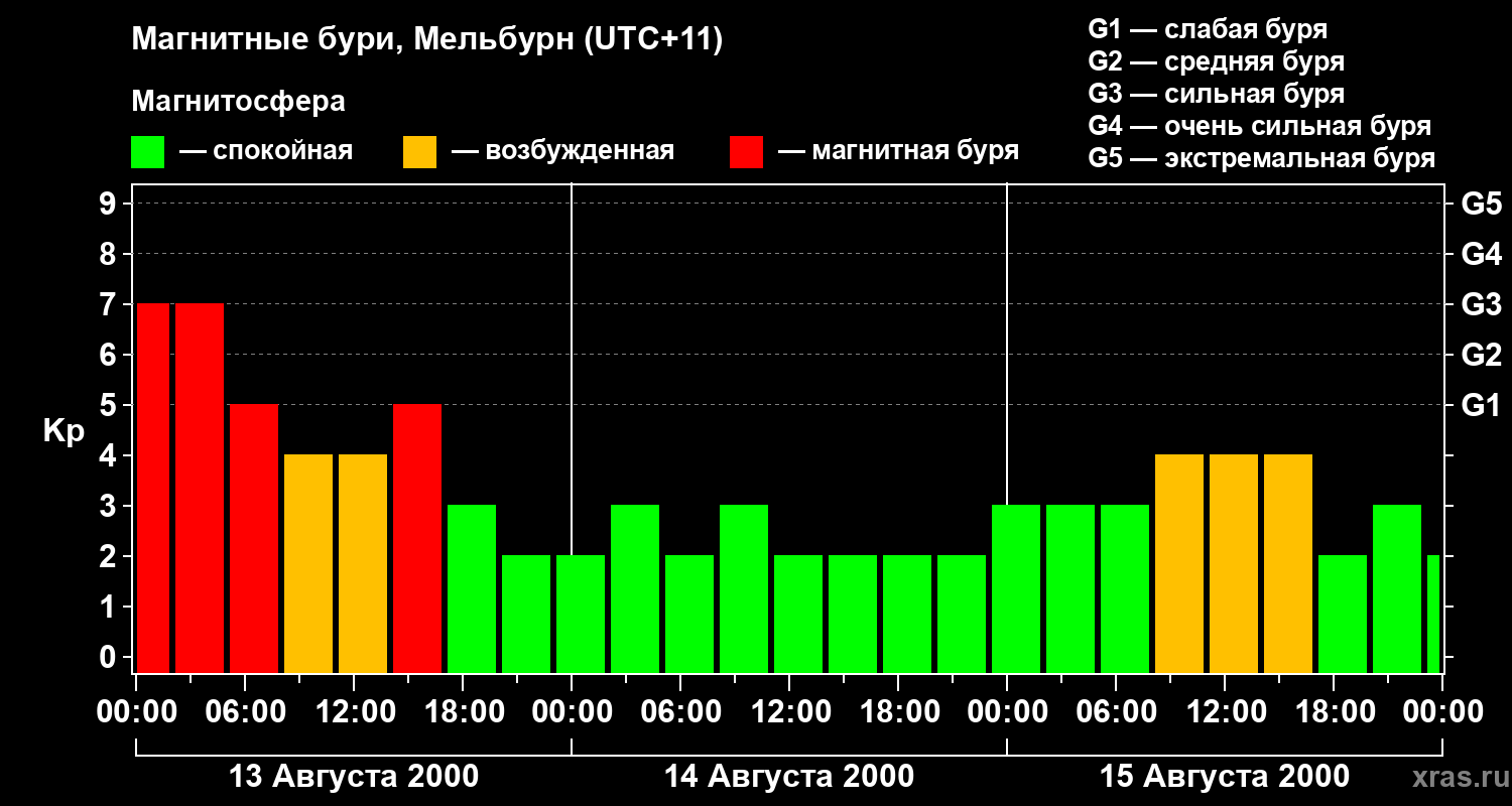 Магнитные бури в Мельбурне 15 августа 2000 года