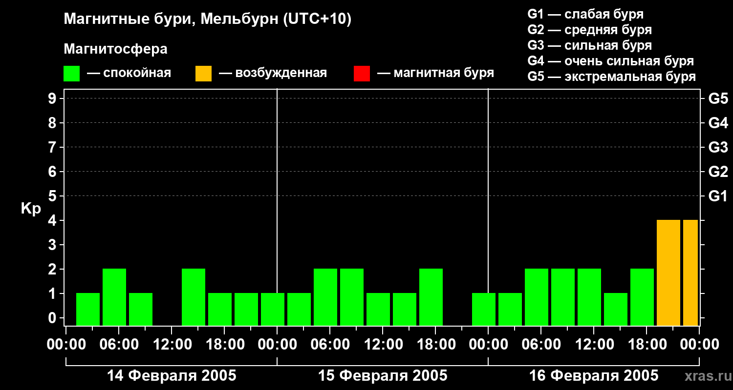 Магнитные бури в Мельбурне — 16 февраля 2005 года