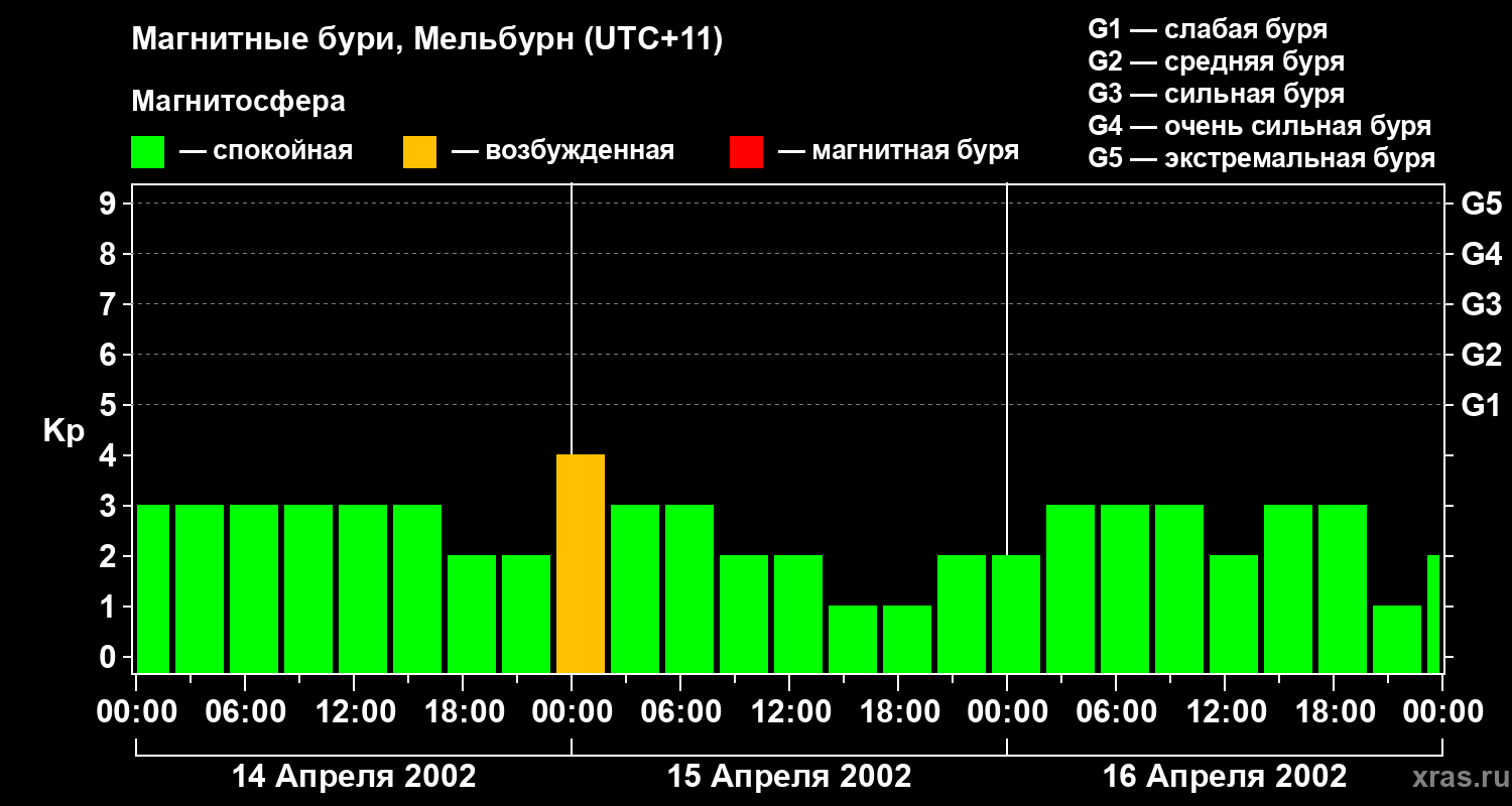 Магнитные бури в Мельбурне в апреле 2002 года