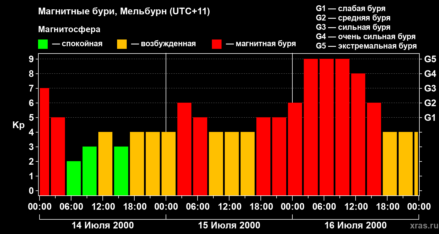 Магнитные бури в Мельбурне 16 июля 2000 года