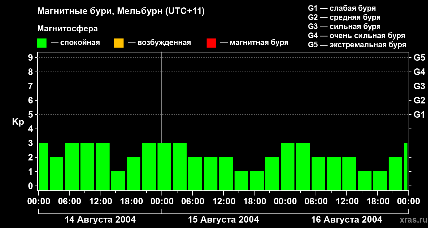 Магнитные бури в Мельбурне 16 августа 2004 года