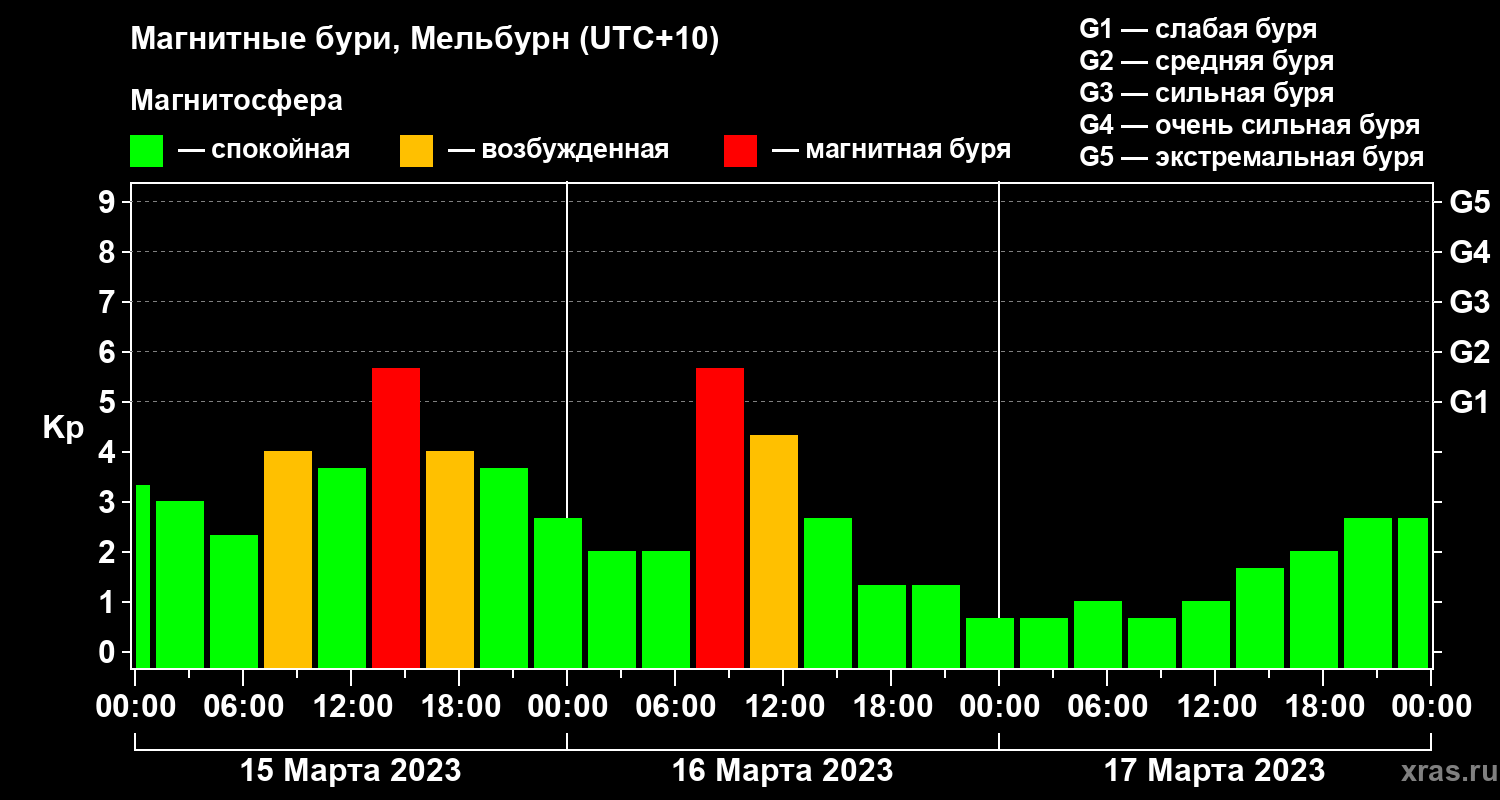 Магнитные бури в Мельбурне 17 марта 2023 года