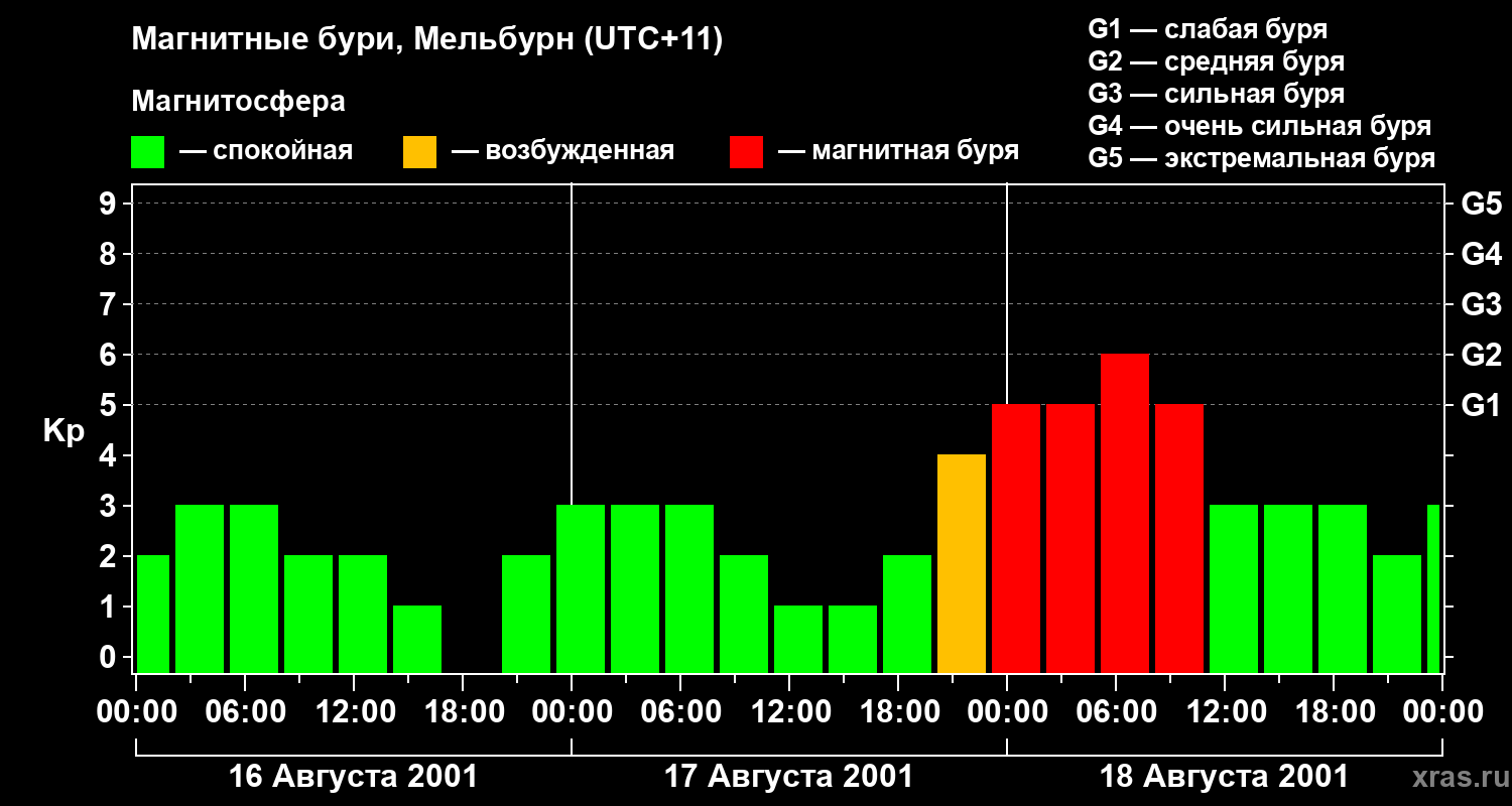 Магнитные бури в Мельбурне 18 августа 2001 года