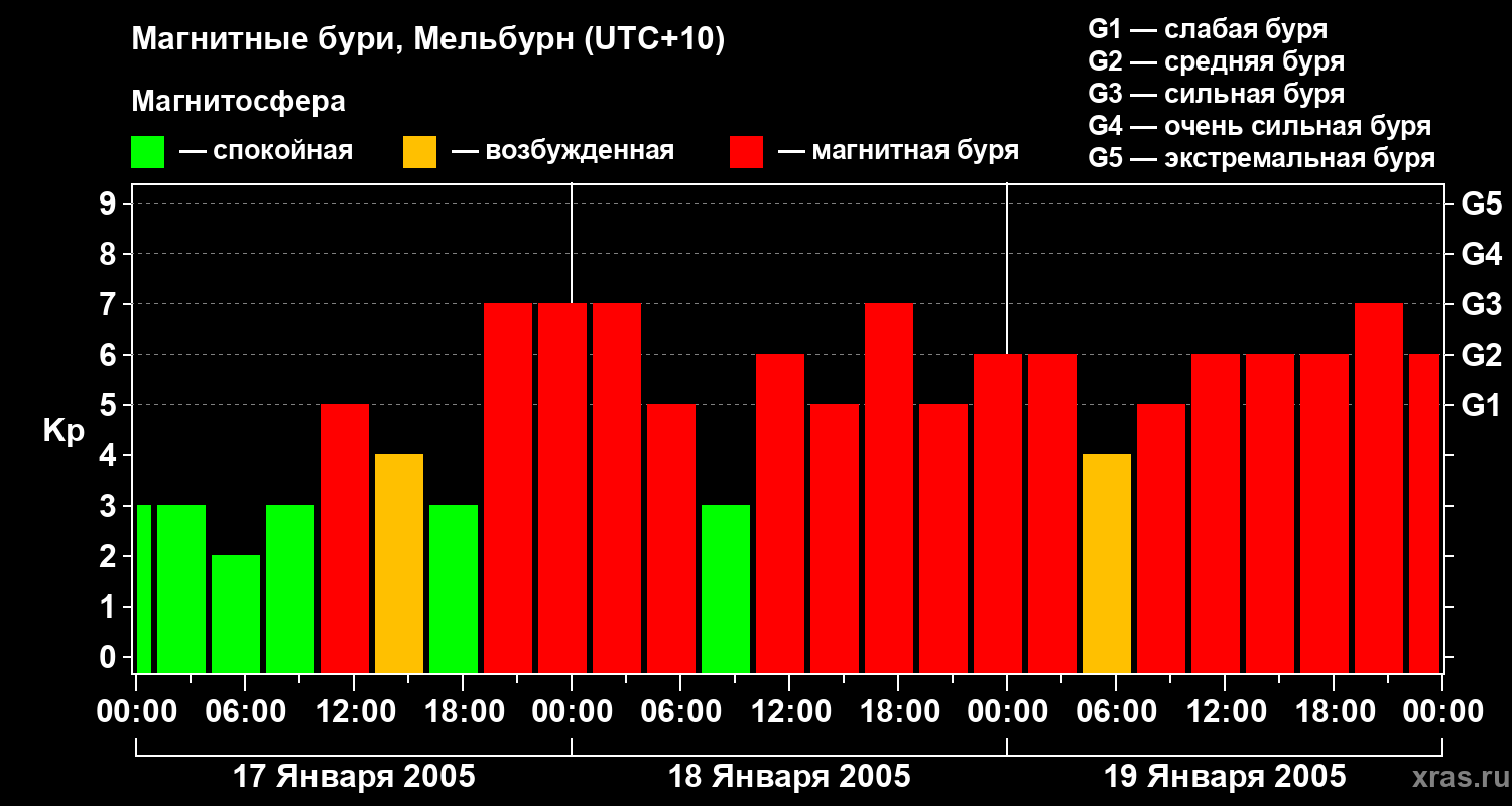 Магнитные бури в Мельбурне — 19 января 2005 года