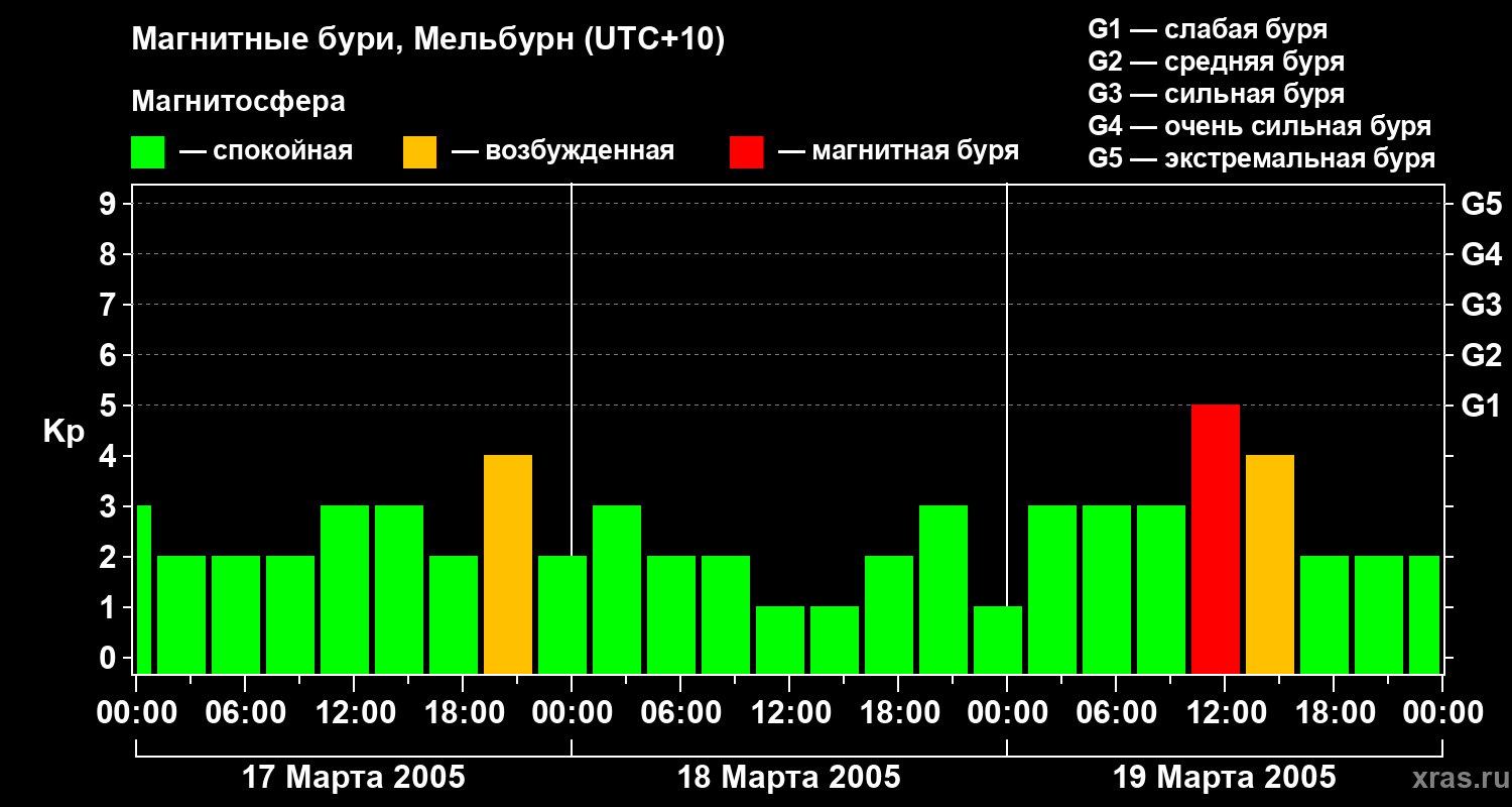 Магнитные бури в Мельбурне — 19 марта 2005 года