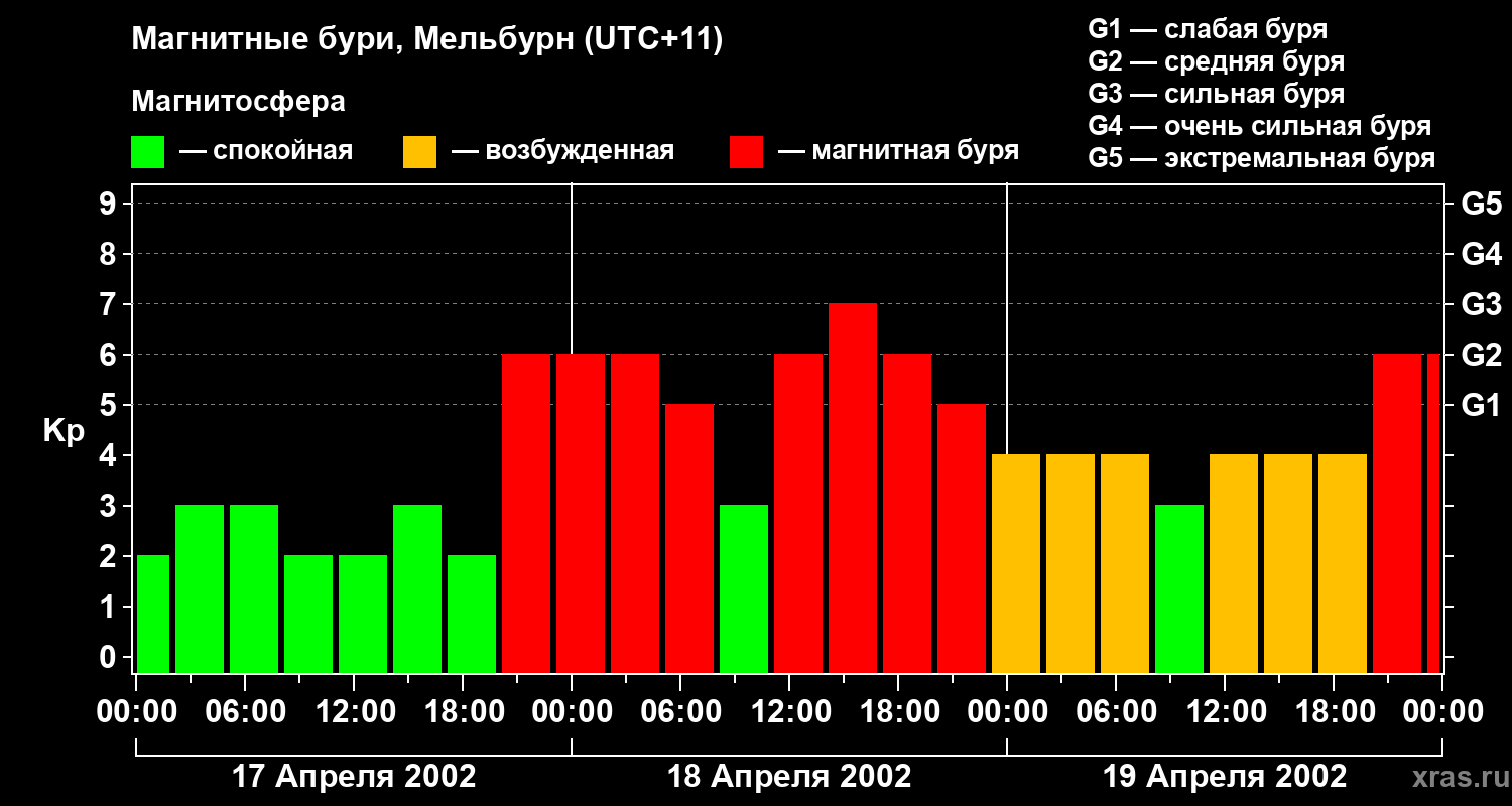 Магнитные бури в Мельбурне в апреле 2002 года
