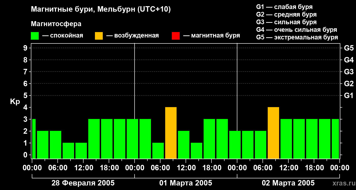 Магнитные бури в Мельбурне — 2 марта 2005 года