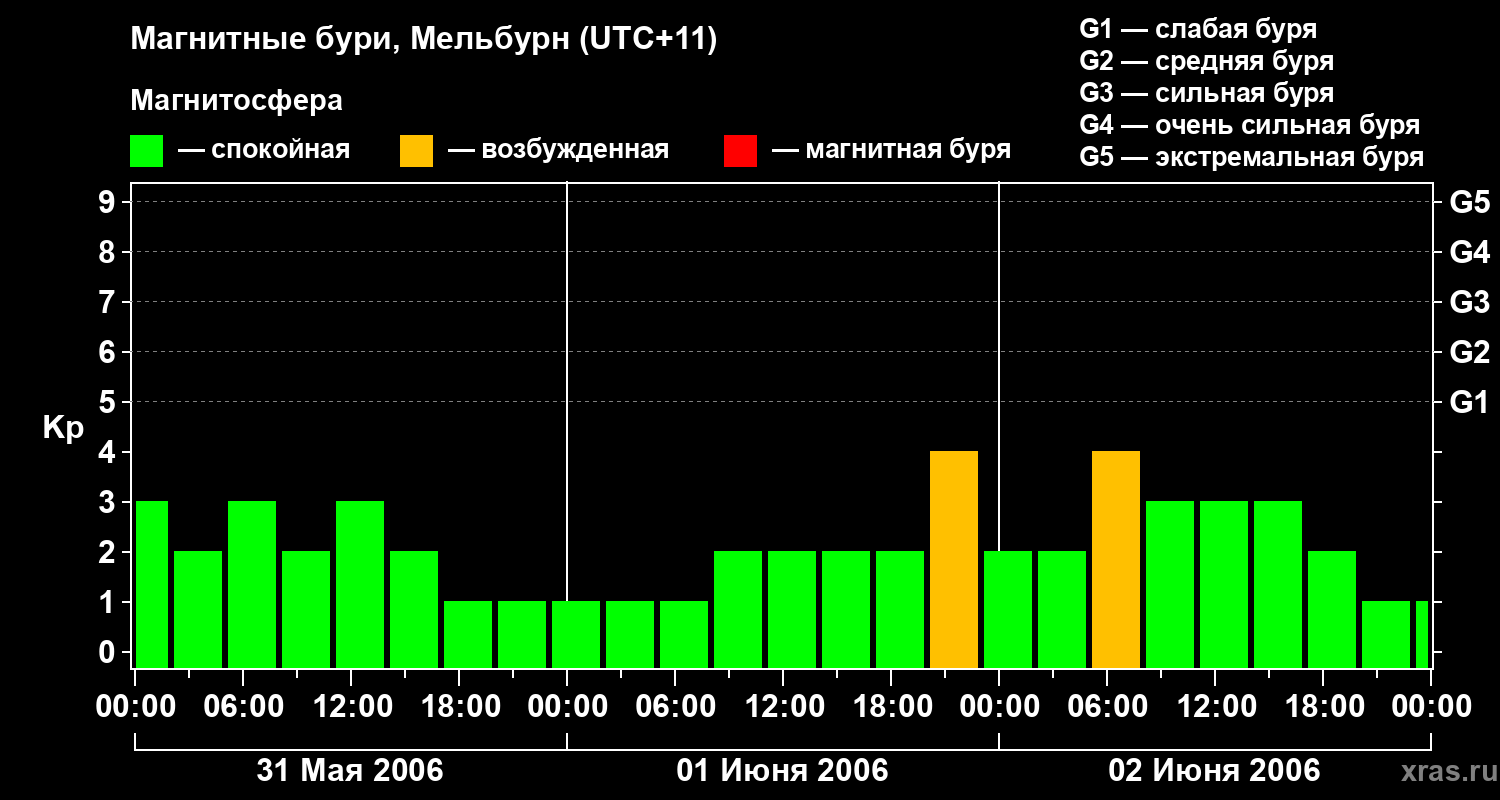 Магнитные бури в Мельбурне 2 июня 2006 года