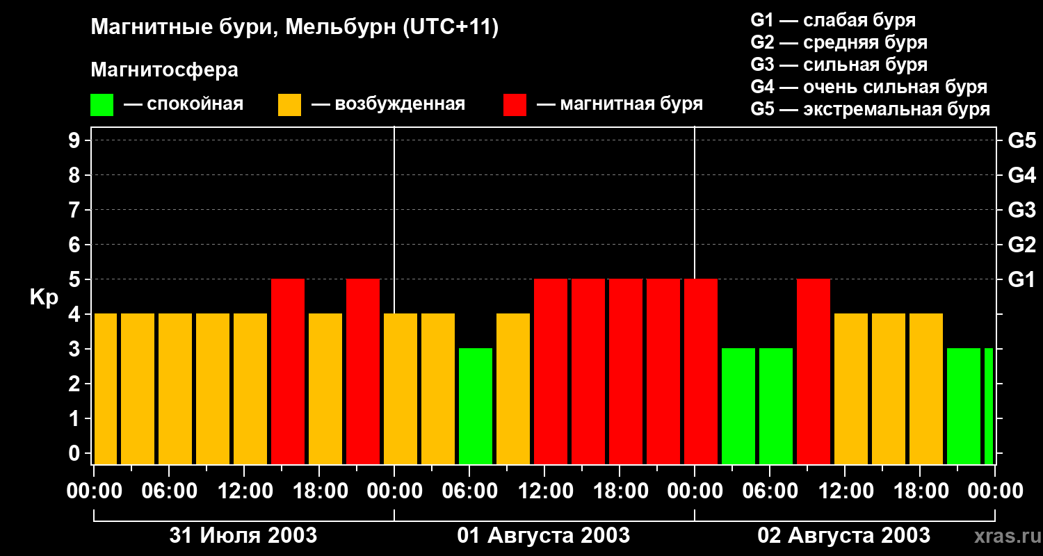 Магнитные бури в Мельбурне — 2 августа 2003 года