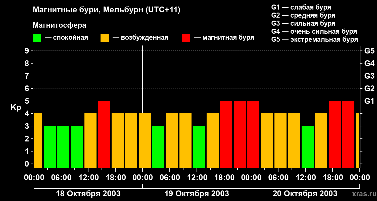 Магнитные бури в Мельбурне — 20 октября 2003 года