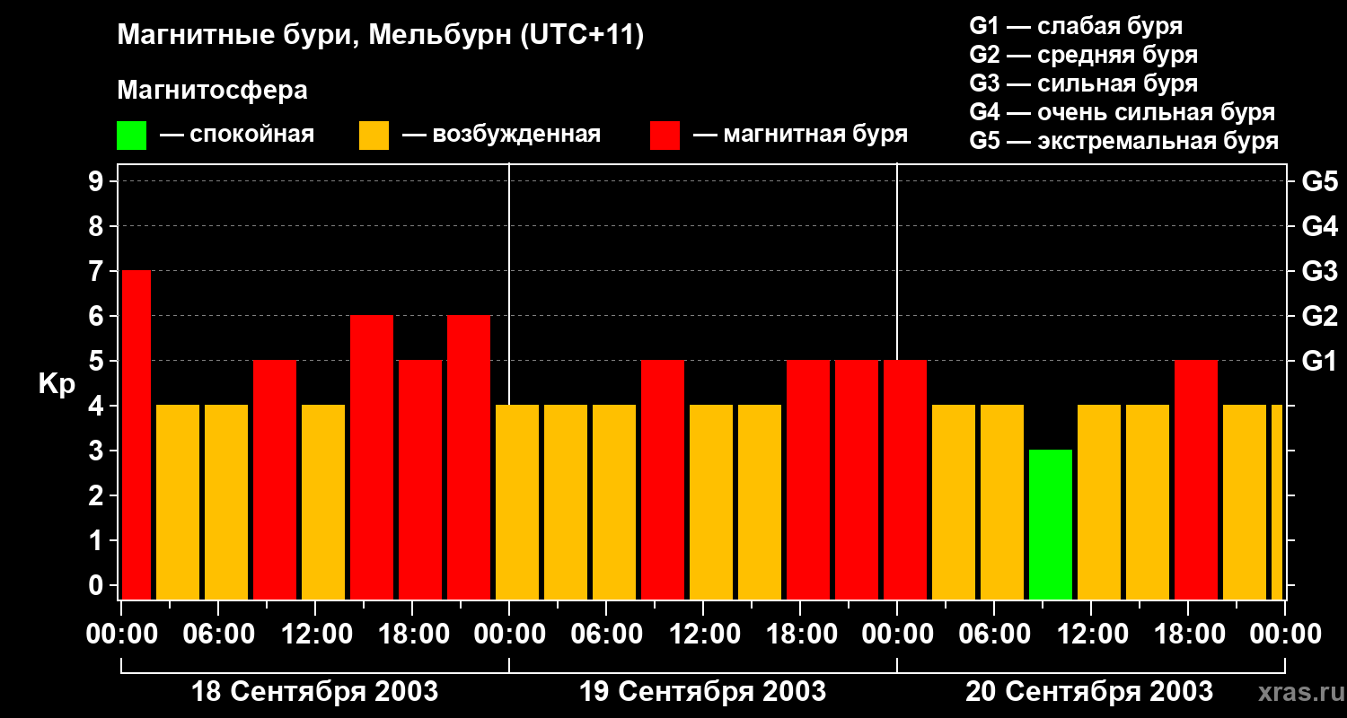 Магнитные бури в Мельбурне — 20 сентября 2003 года