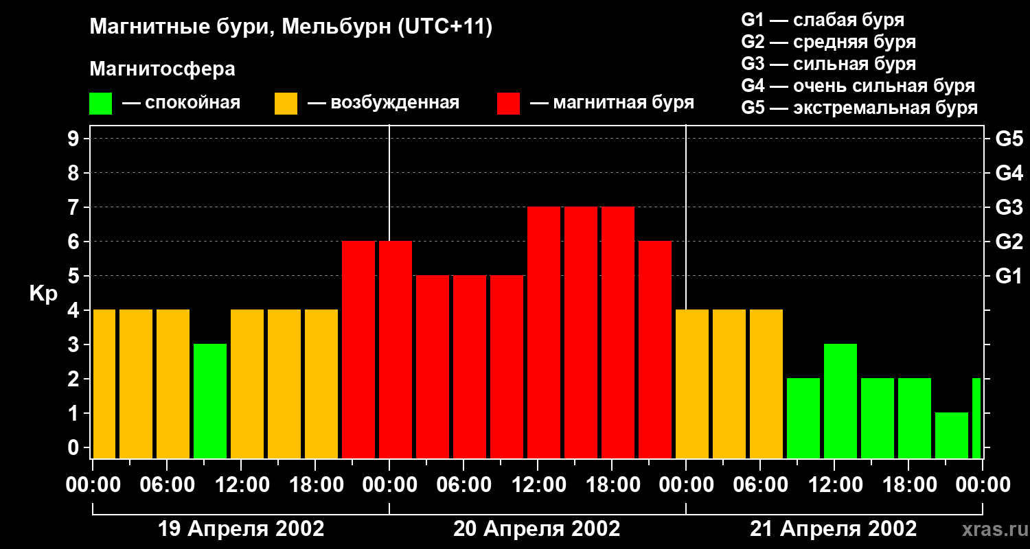Магнитные бури в Мельбурне 21 апреля 2002 года