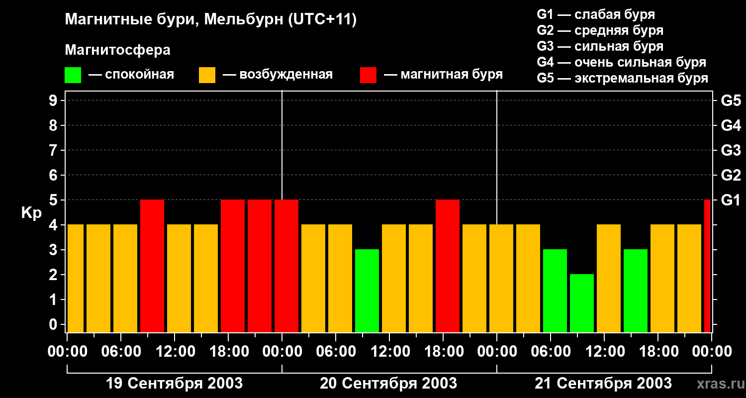 Магнитные бури в Мельбурне — 21 сентября 2003 года