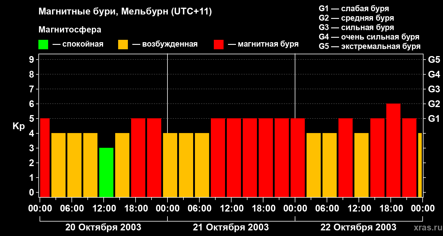 Магнитные бури в Мельбурне — 22 октября 2003 года