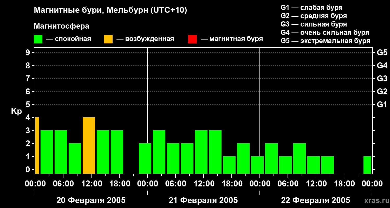 Магнитные бури в Мельбурне — 22 февраля 2005 года