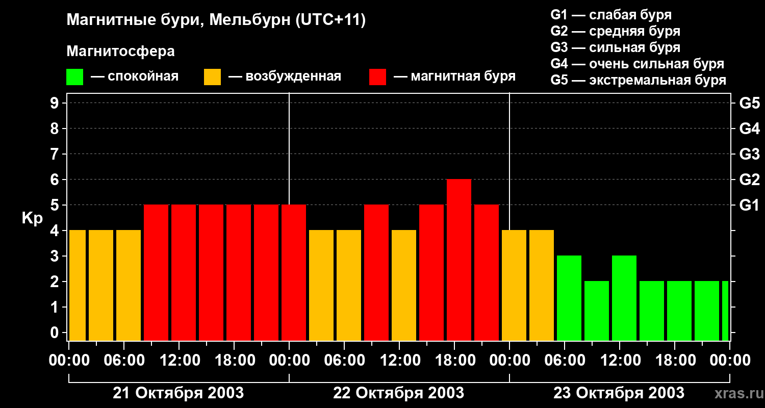 Магнитные бури в Мельбурне — 23 октября 2003 года