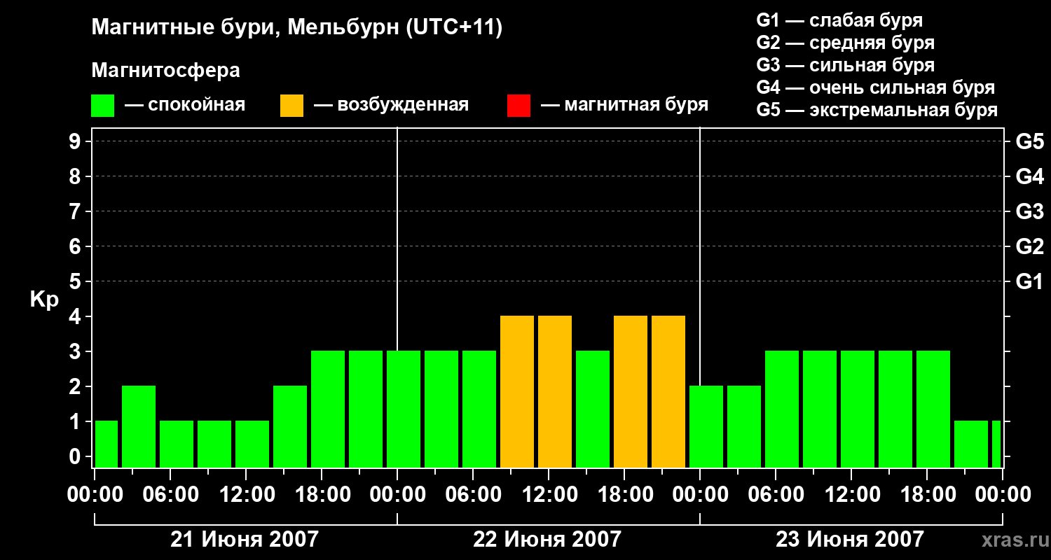 Магнитные бури в Мельбурне — 23 июня 2007 года