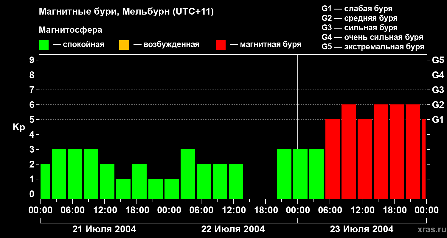 Магнитные бури в Мельбурне — 23 июля 2004 года