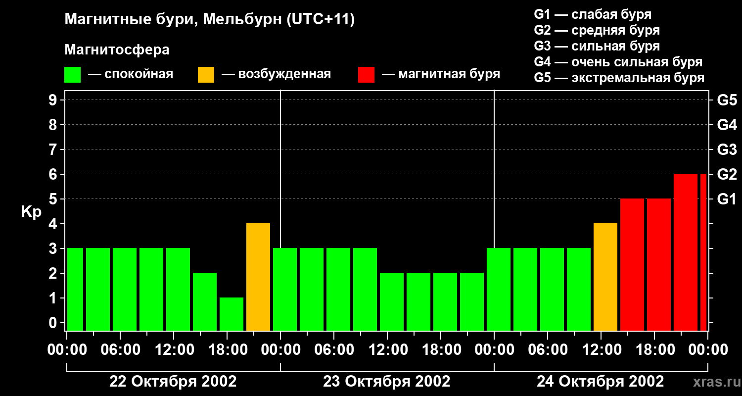 Магнитные бури в Мельбурне — 24 октября 2002 года
