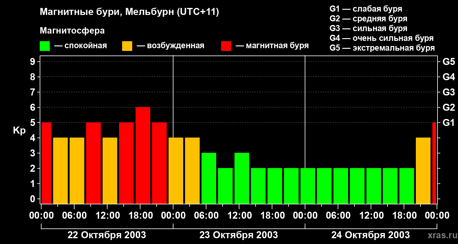 Магнитные бури в Мельбурне — 24 октября 2003 года
