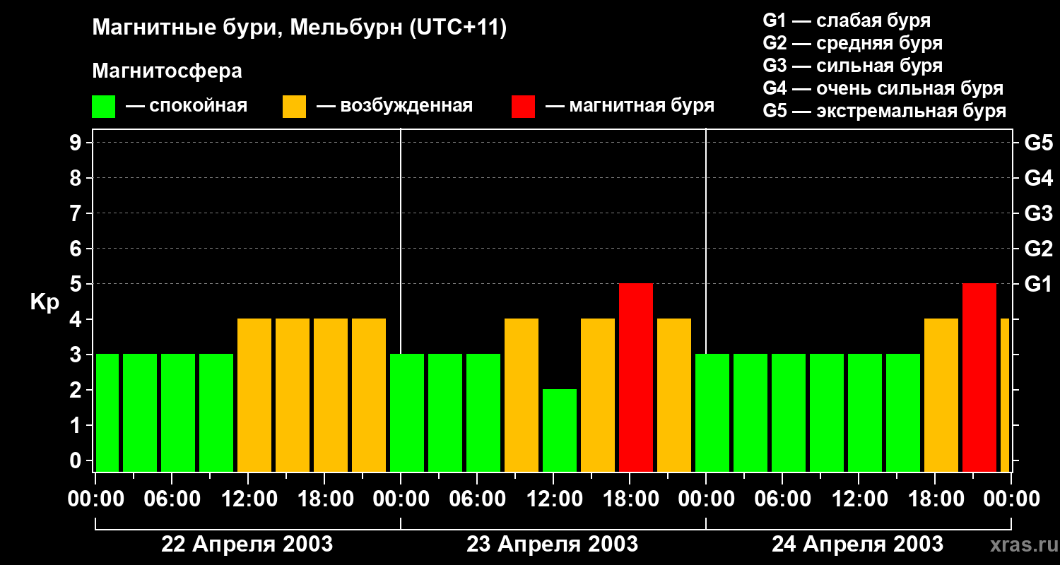 Магнитные бури в Мельбурне — 24 апреля 2003 года