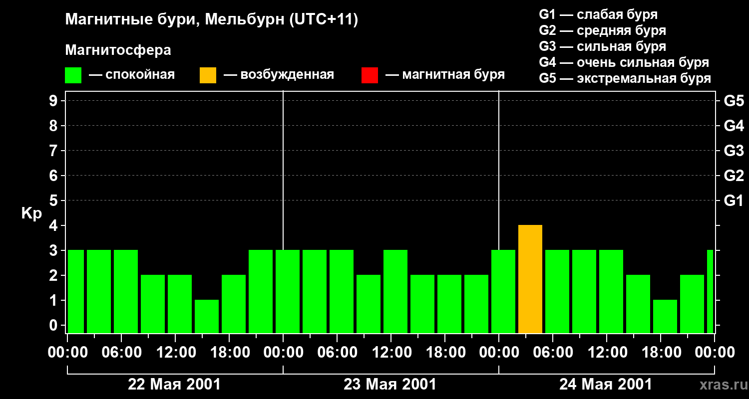 Магнитные бури в Мельбурне 24 мая 2001 года