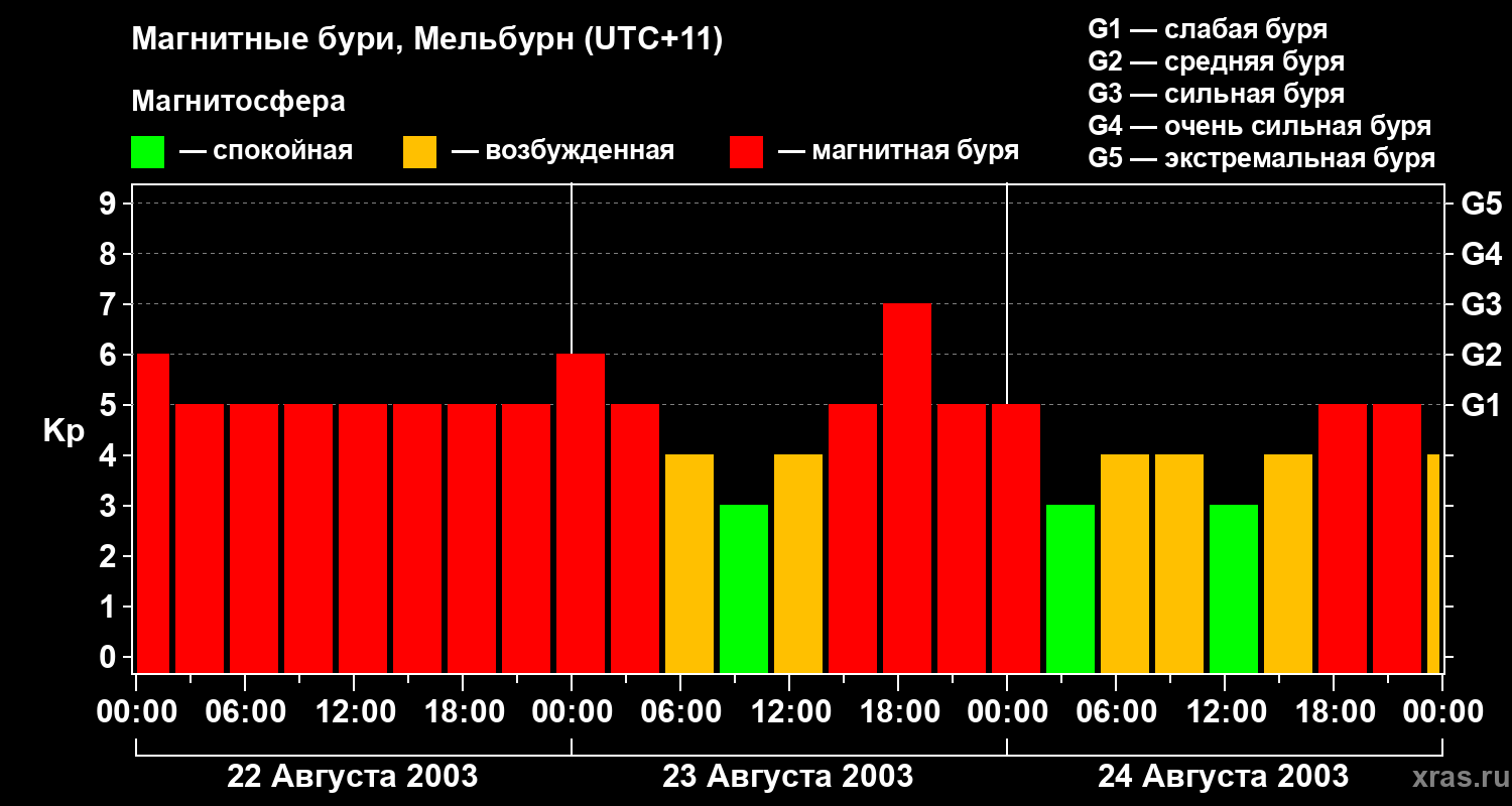 Магнитные бури в Мельбурне — 24 августа 2003 года