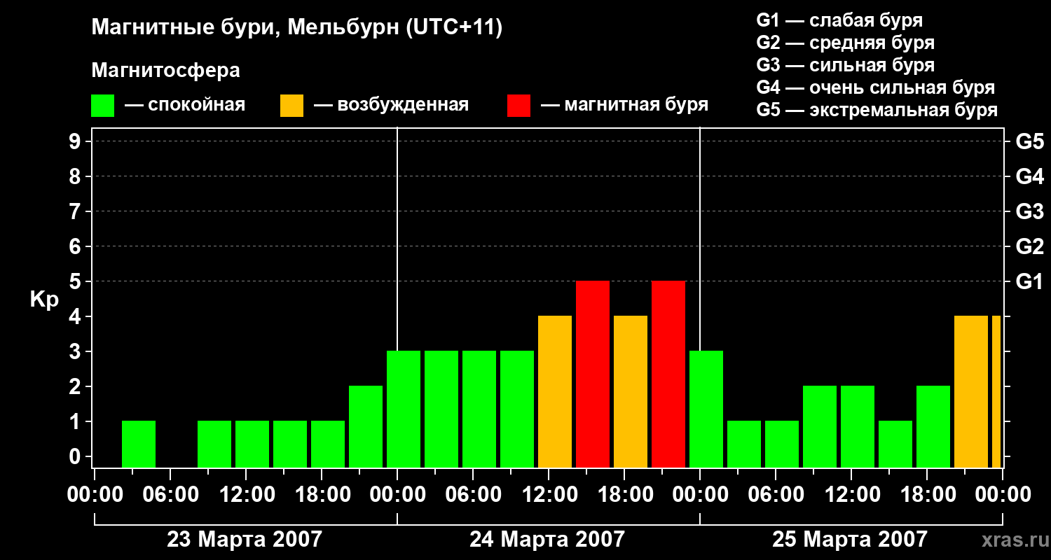 Магнитные бури в Мельбурне — 25 марта 2007 года