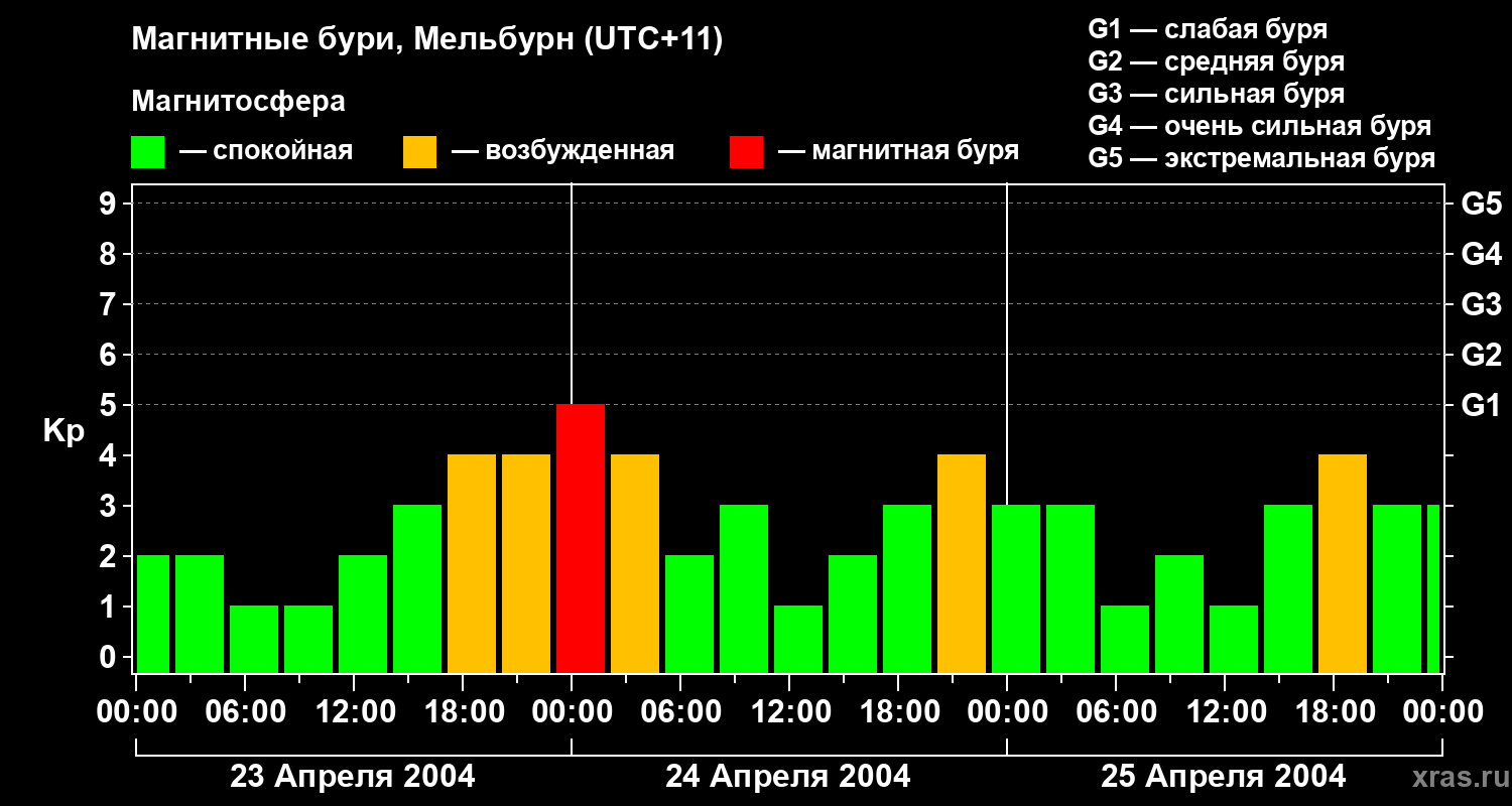 Магнитные бури в Мельбурне — 25 апреля 2004 года