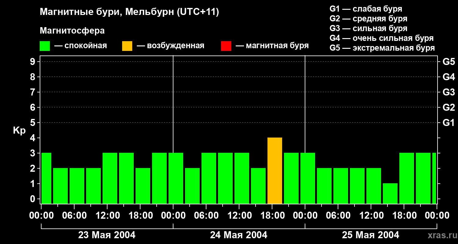 Магнитные бури в Мельбурне 25 мая 2004 года