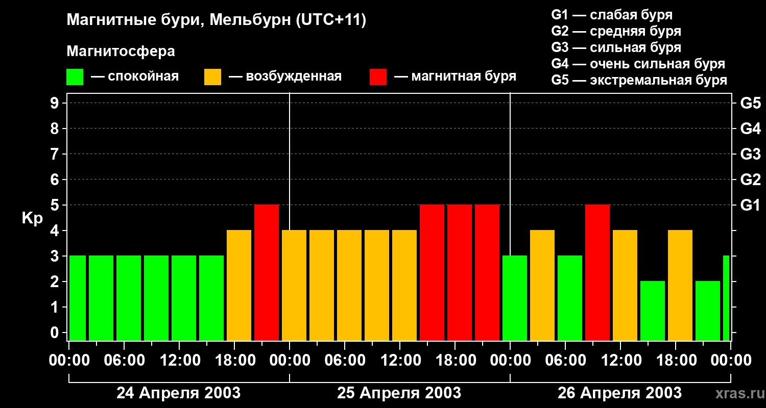 Магнитные бури в Мельбурне 26 апреля 2003 года
