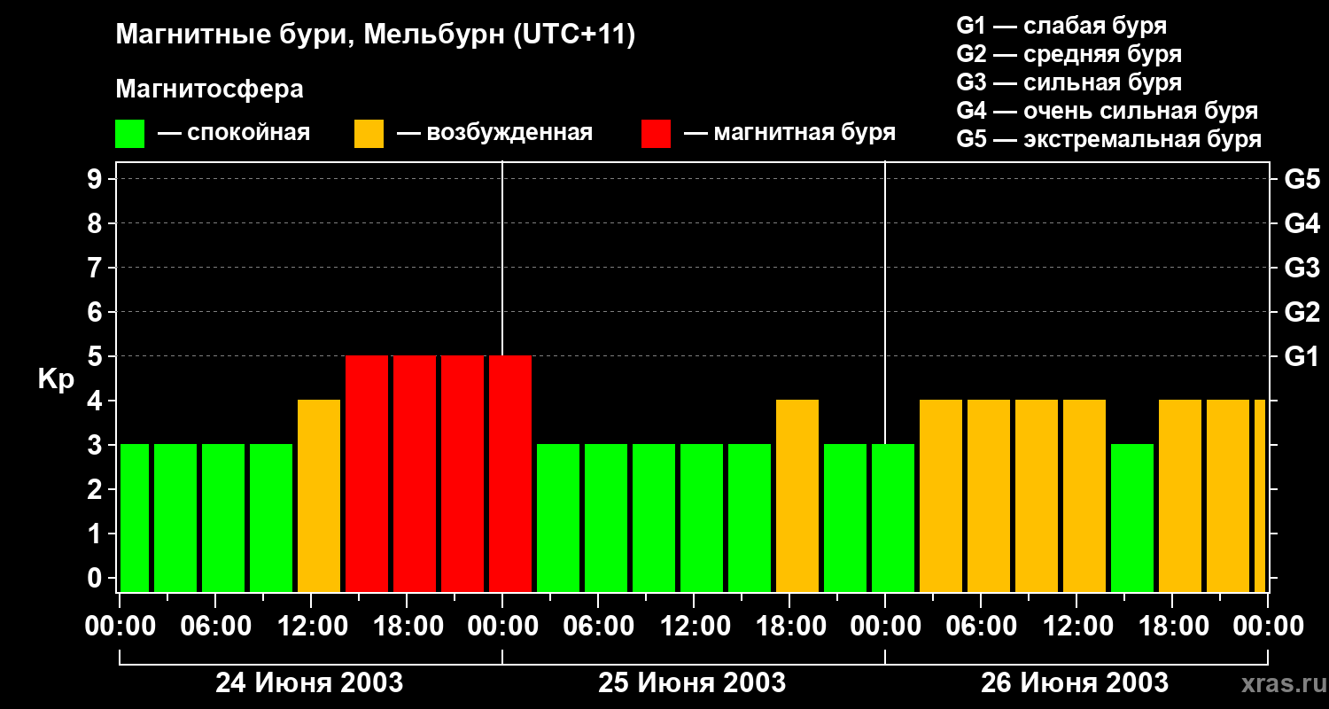 Магнитные бури в Мельбурне — 26 июня 2003 года