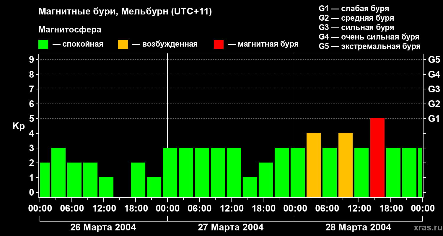 Магнитные бури в Мельбурне — 28 марта 2004 года