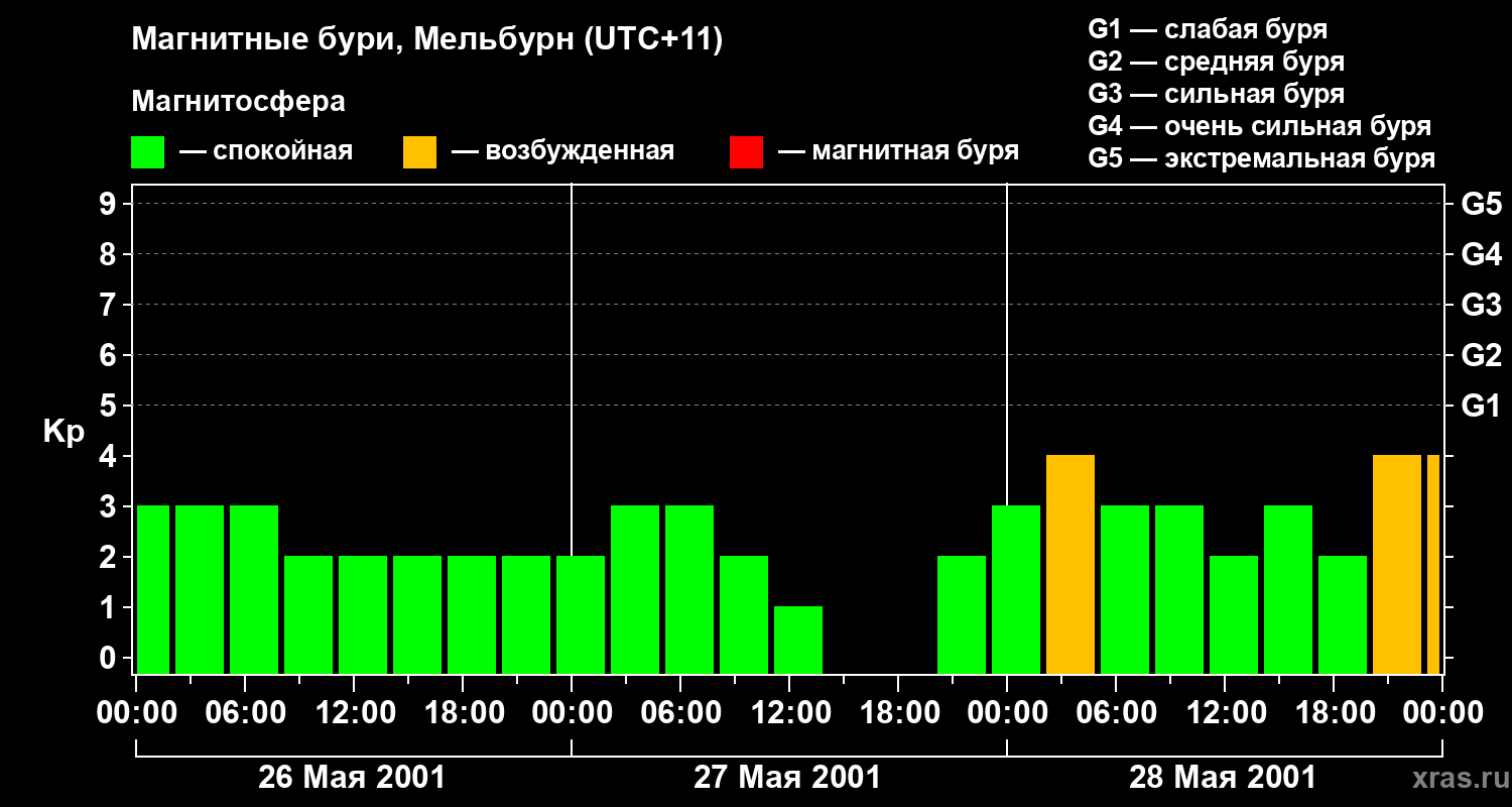 Магнитные бури в Мельбурне 28 мая 2001 года