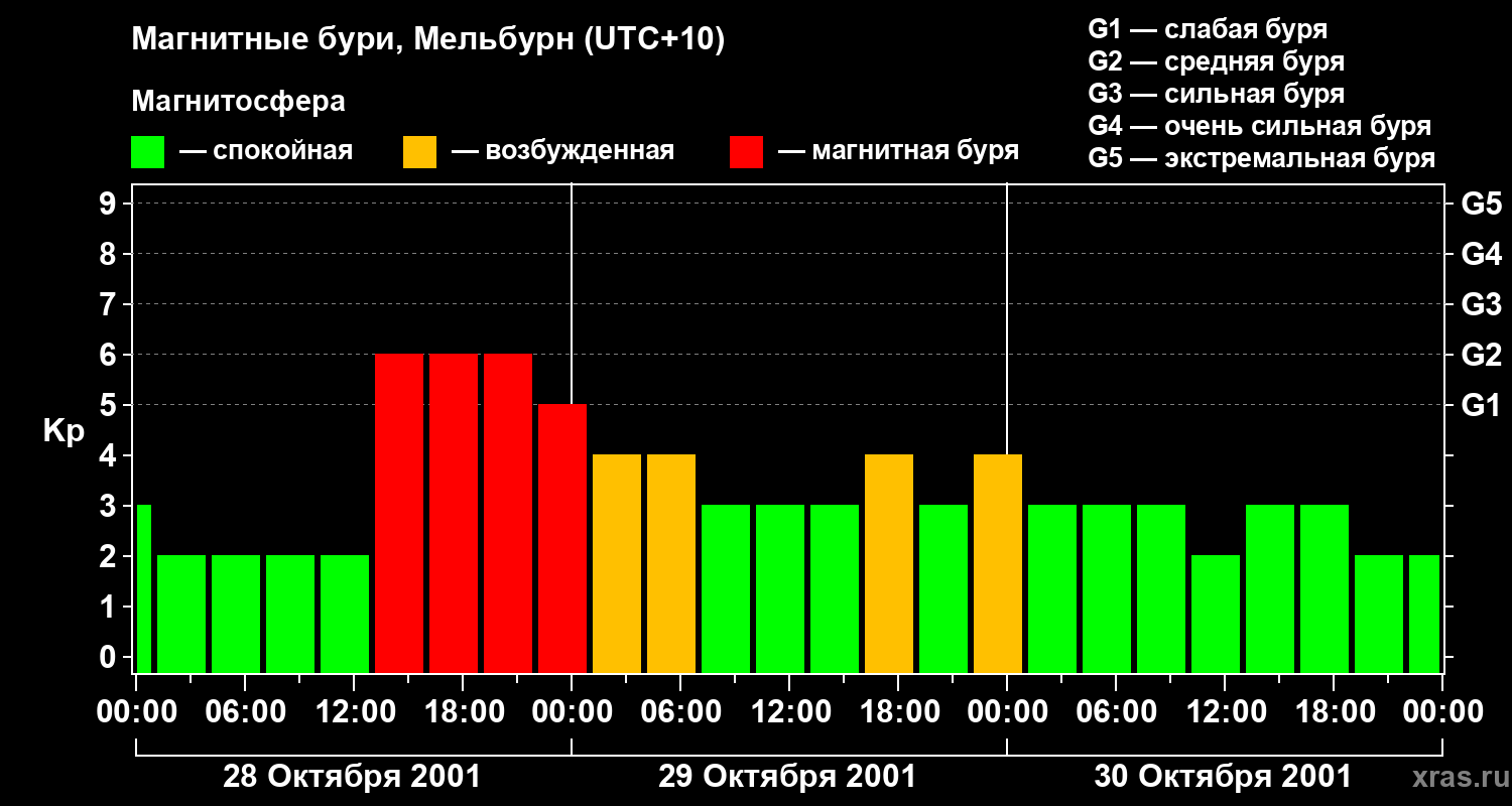Магнитные бури в Мельбурне 30 октября 2001 года