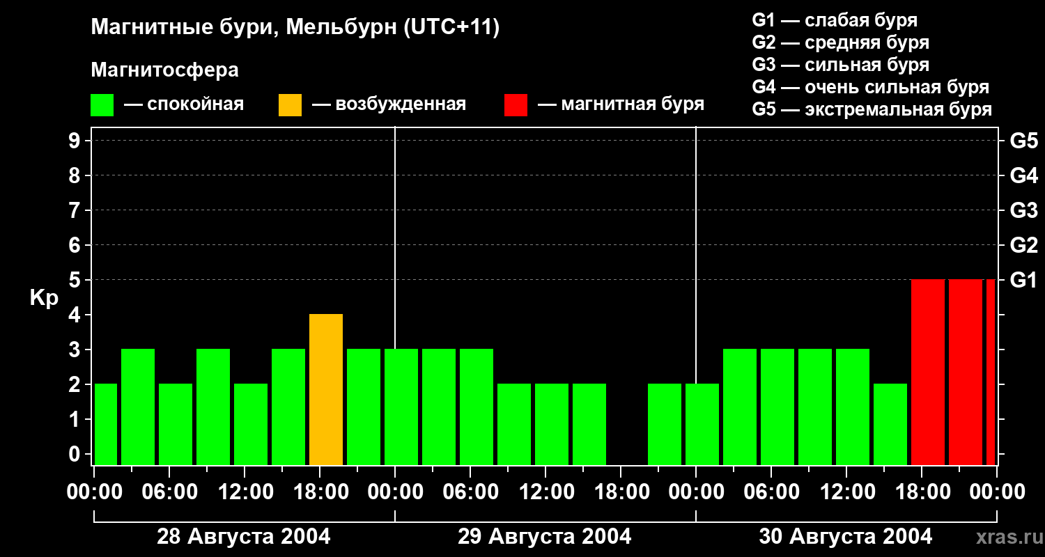 Магнитные бури в Мельбурне — 30 августа 2004 года