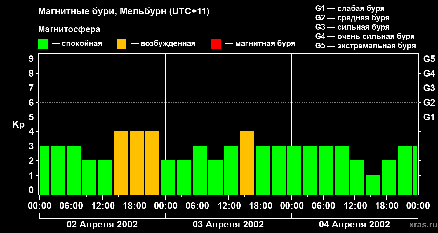Магнитные бури в Мельбурне 4 апреля 2002 года