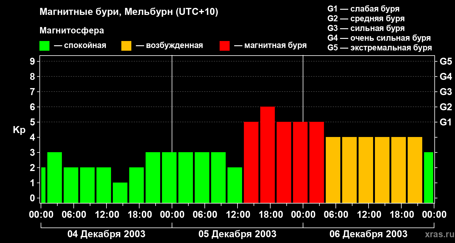 Магнитные бури в Мельбурне — 6 декабря 2003 года