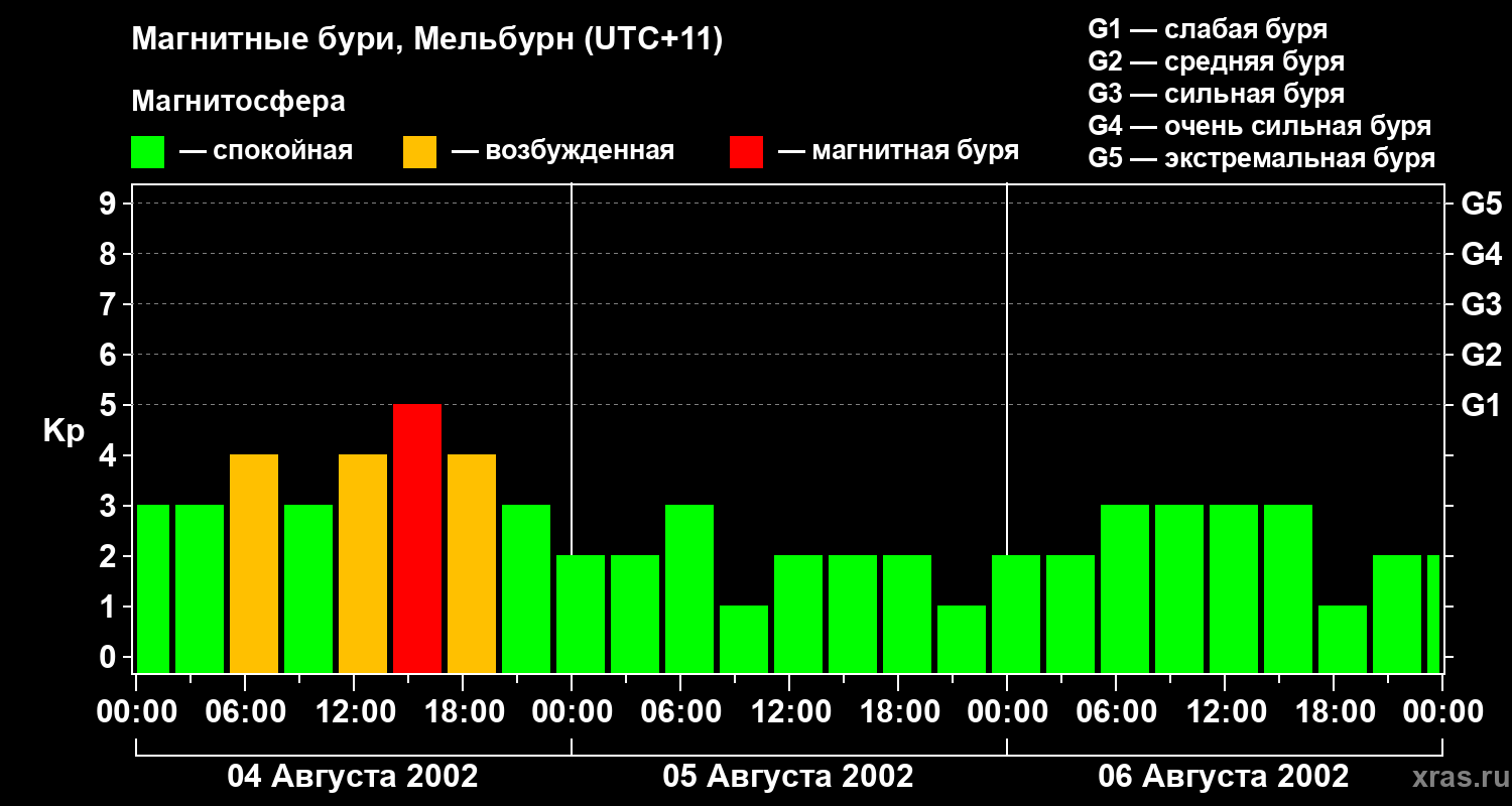 Магнитные бури в Мельбурне 6 августа 2002 года