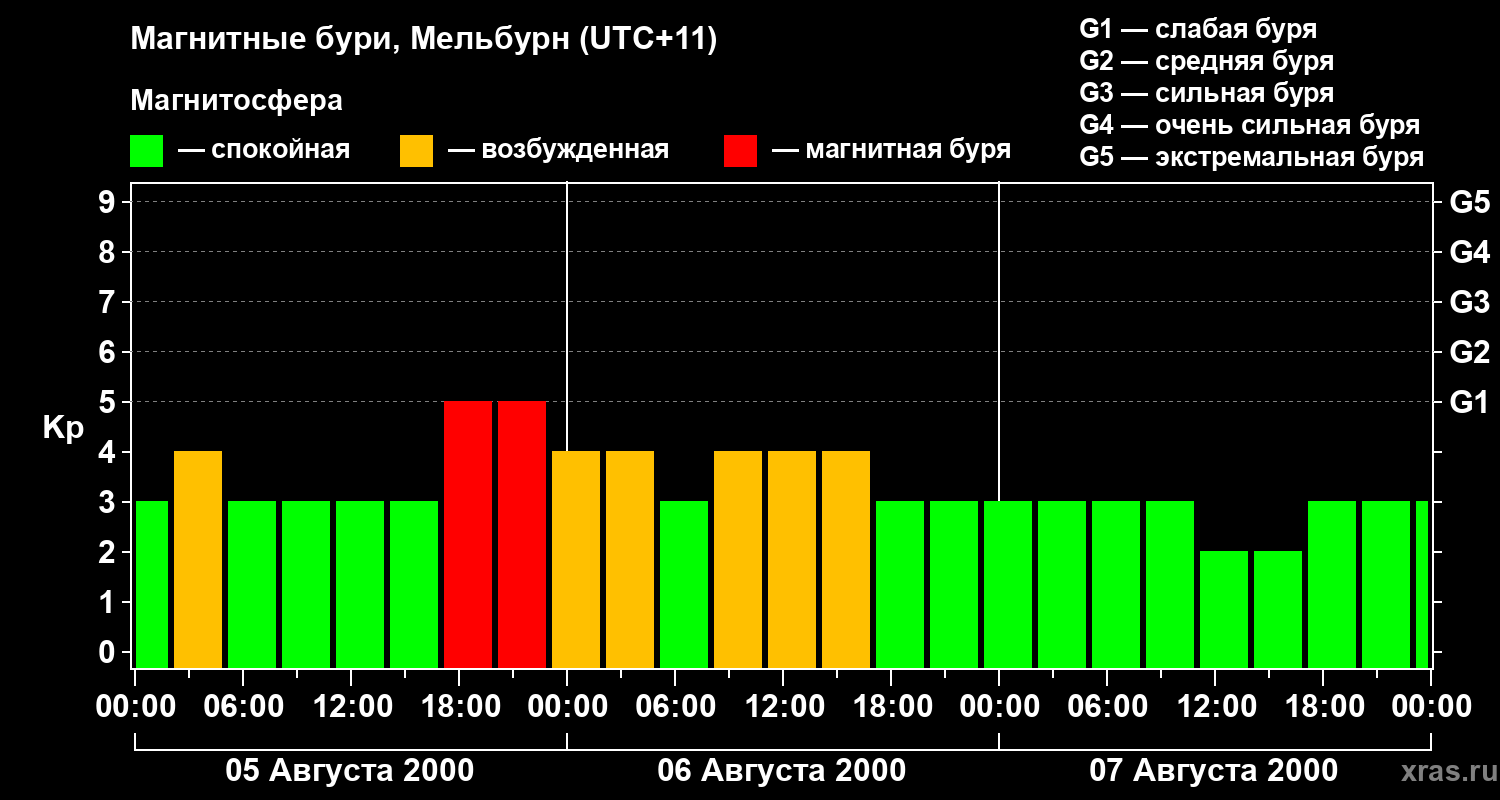 Магнитные бури в Мельбурне 7 августа 2000 года
