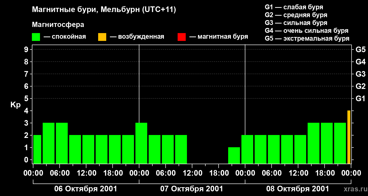 Магнитные бури в Мельбурне 8 октября 2001 года