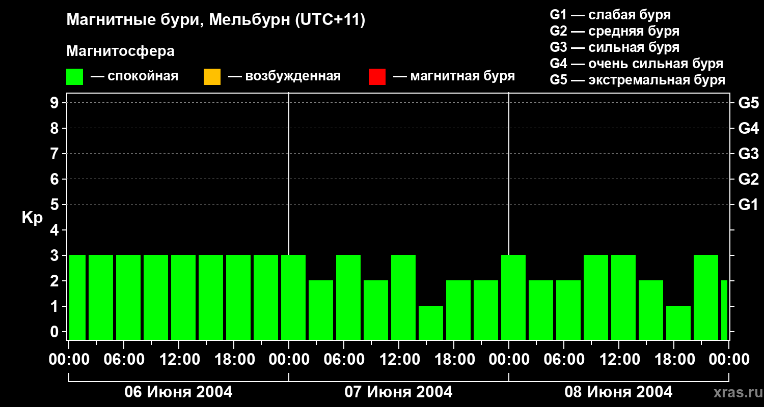 Магнитные бури в Мельбурне 8 июня 2004 года