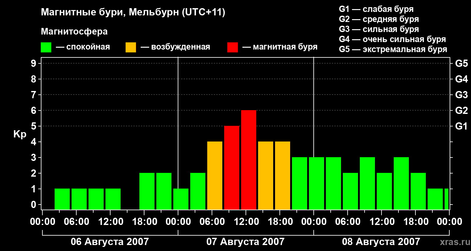 Магнитные бури в Мельбурне — 8 августа 2007 года
