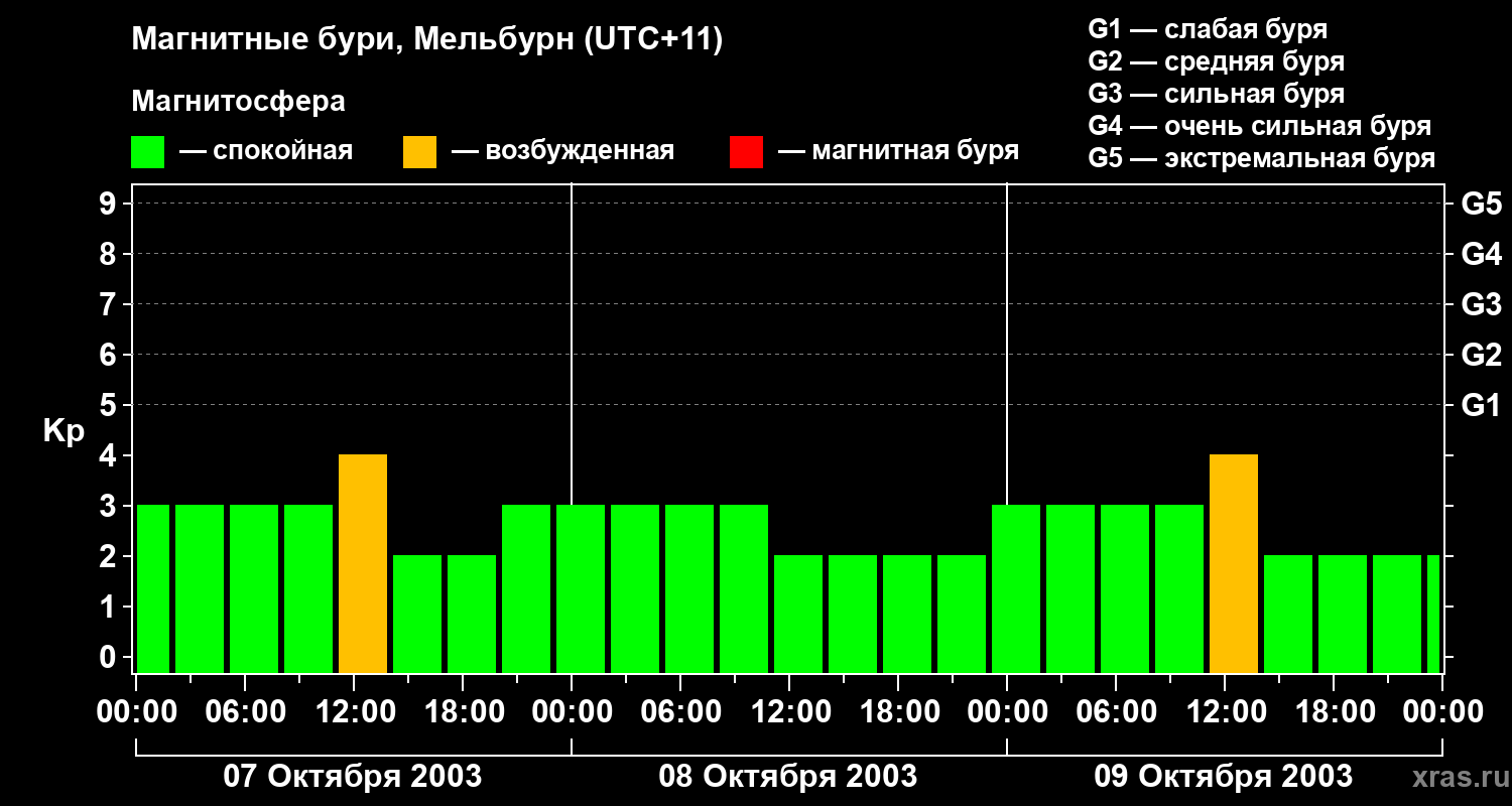 Магнитные бури в Мельбурне 9 октября 2003 года