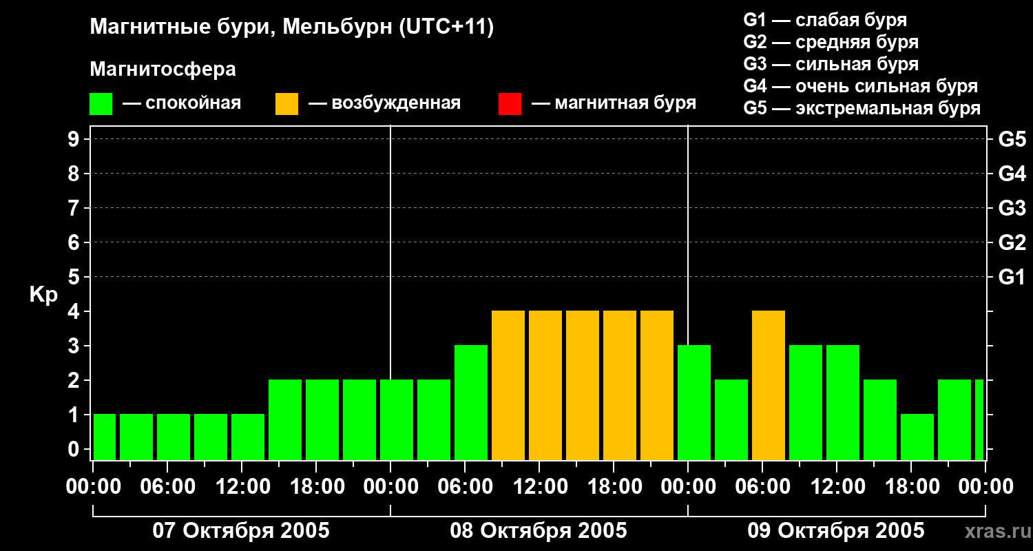 Магнитные бури в Мельбурне — 9 октября 2005 года