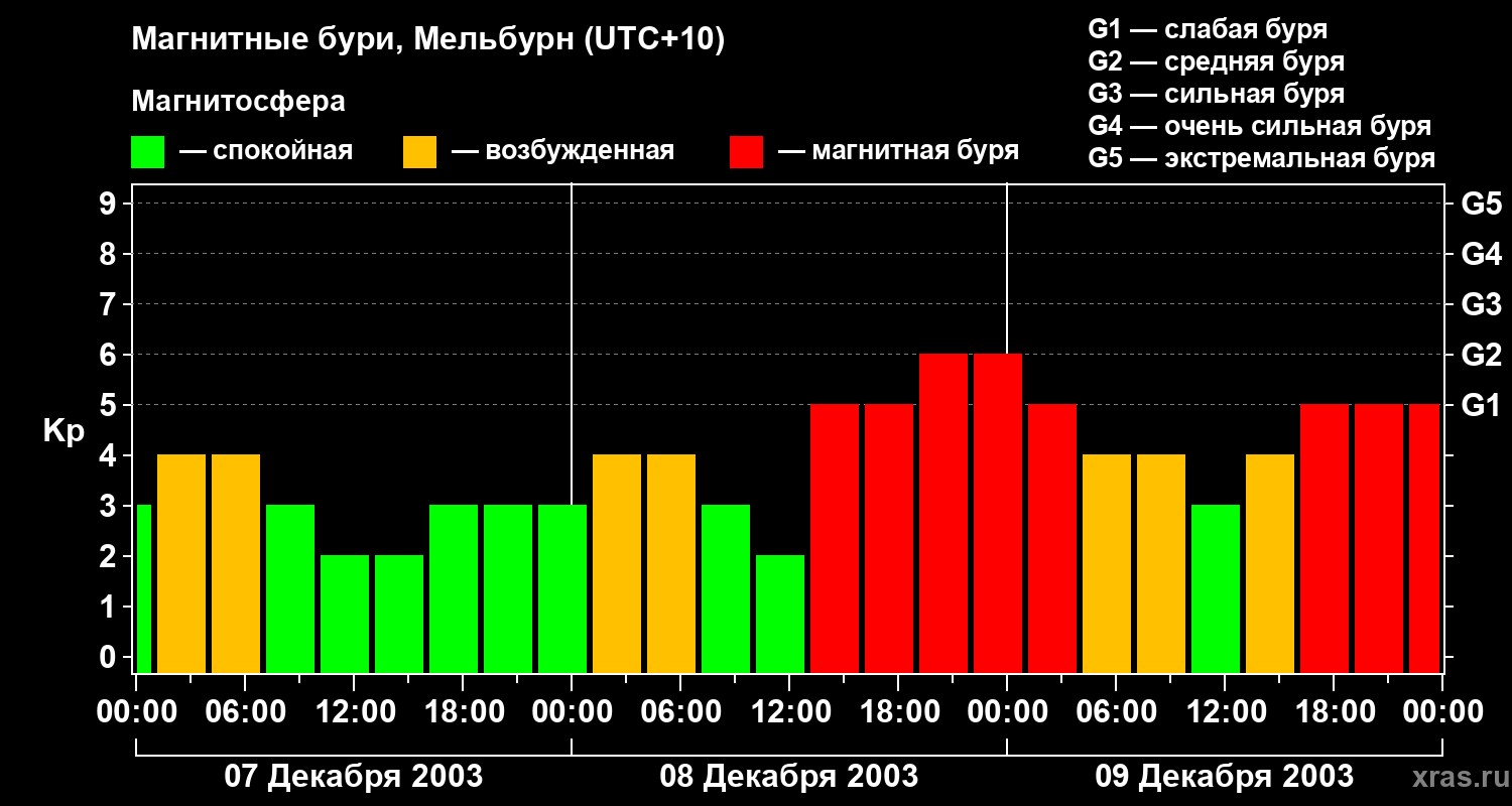Магнитные бури в Мельбурне — 9 декабря 2003 года