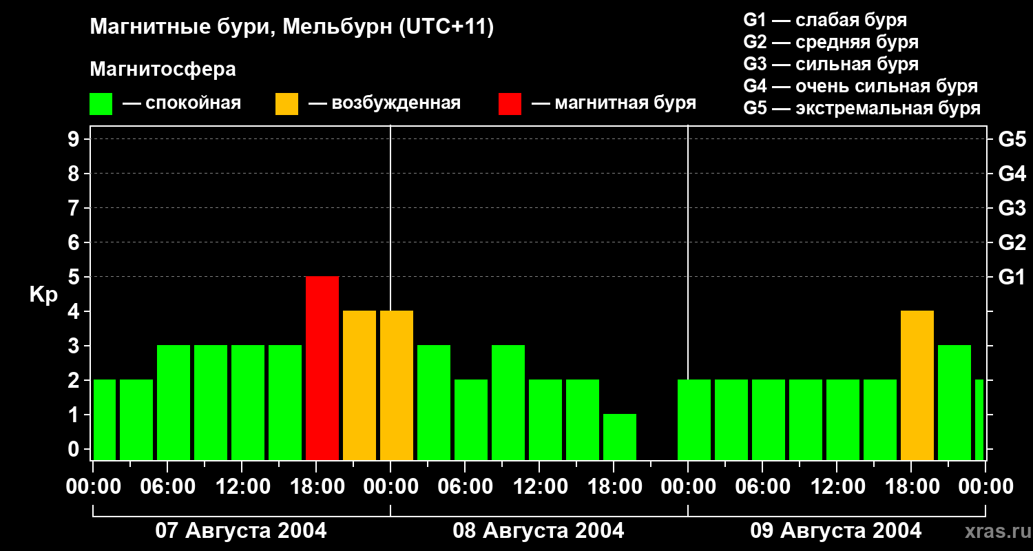 Магнитные бури в Мельбурне — 9 августа 2004 года